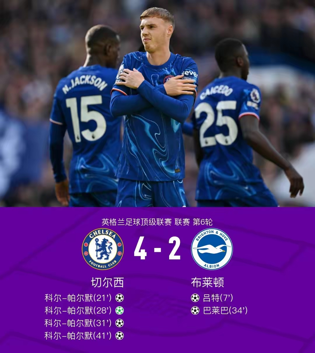 4、38场比赛中获得24场胜利,7场平局,7场失利,进67球,失30球,积79分2005年,切尔西排名升至第1,38场比赛中获得29场胜利,8场平局,1场失利,进72球,失15球,积95分2006年,切尔西继续保持榜首位置,38场比赛中获得29场胜利,4场平局,5场失利,进72球,失22球,积91分。
